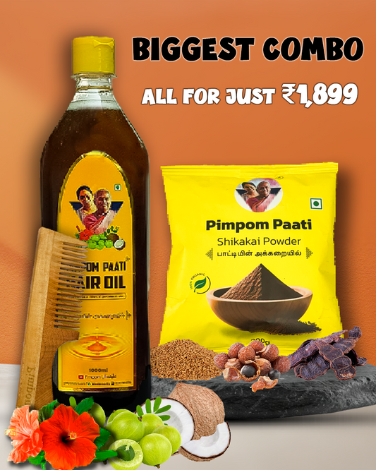 Hey there! I'm Pimpom, the other half of Pimpom Paati Hair Oil. Welcome to the realm of Paati, a name held dear by our followers, now transformed into a brand that resonates with love and tradition. For nearly three decades, My Paati has been meticulously crafting this hair oil. It's a legacy that has been passed down through the years.