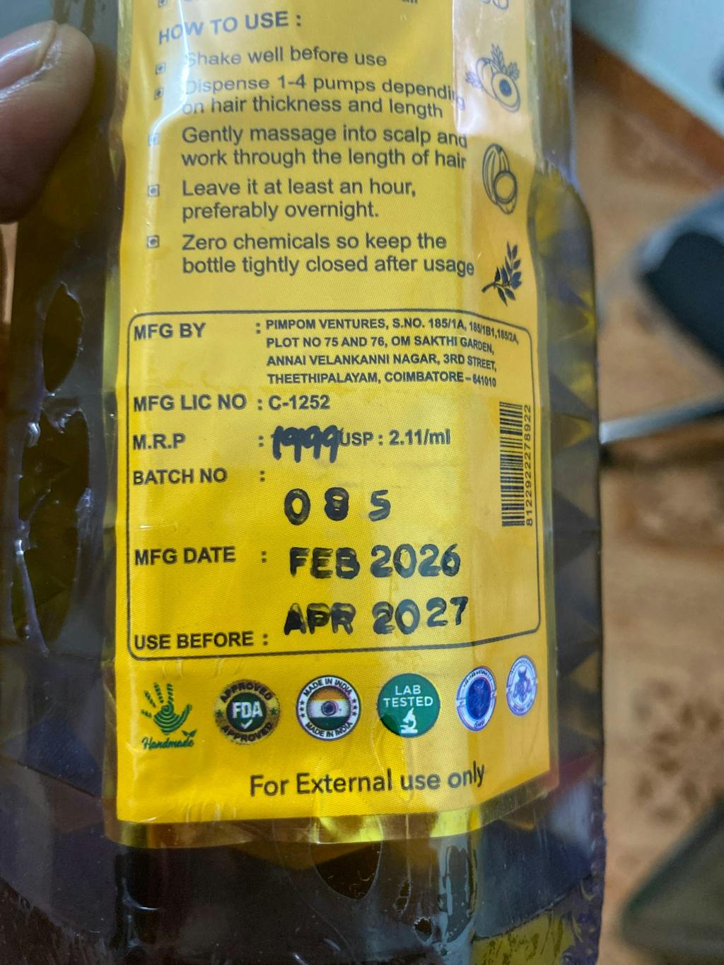 Our paati hair oil made with love and care by our 80+yrs old paati. Free from chemicals. So babies to elders all genders can use regularly, No special care needed. Promotes hair growth, Improves hair softness, Prevents split ends, Slows down greying of hair, Eliminates dandruff, Strengthen hair roots. Ingredients: Coconut Oil, Curry Leaves, Fenugreek Seeds, Amla, Hibiscus, Henna Leaves. ISO & GMP certified and Approved by FDA.